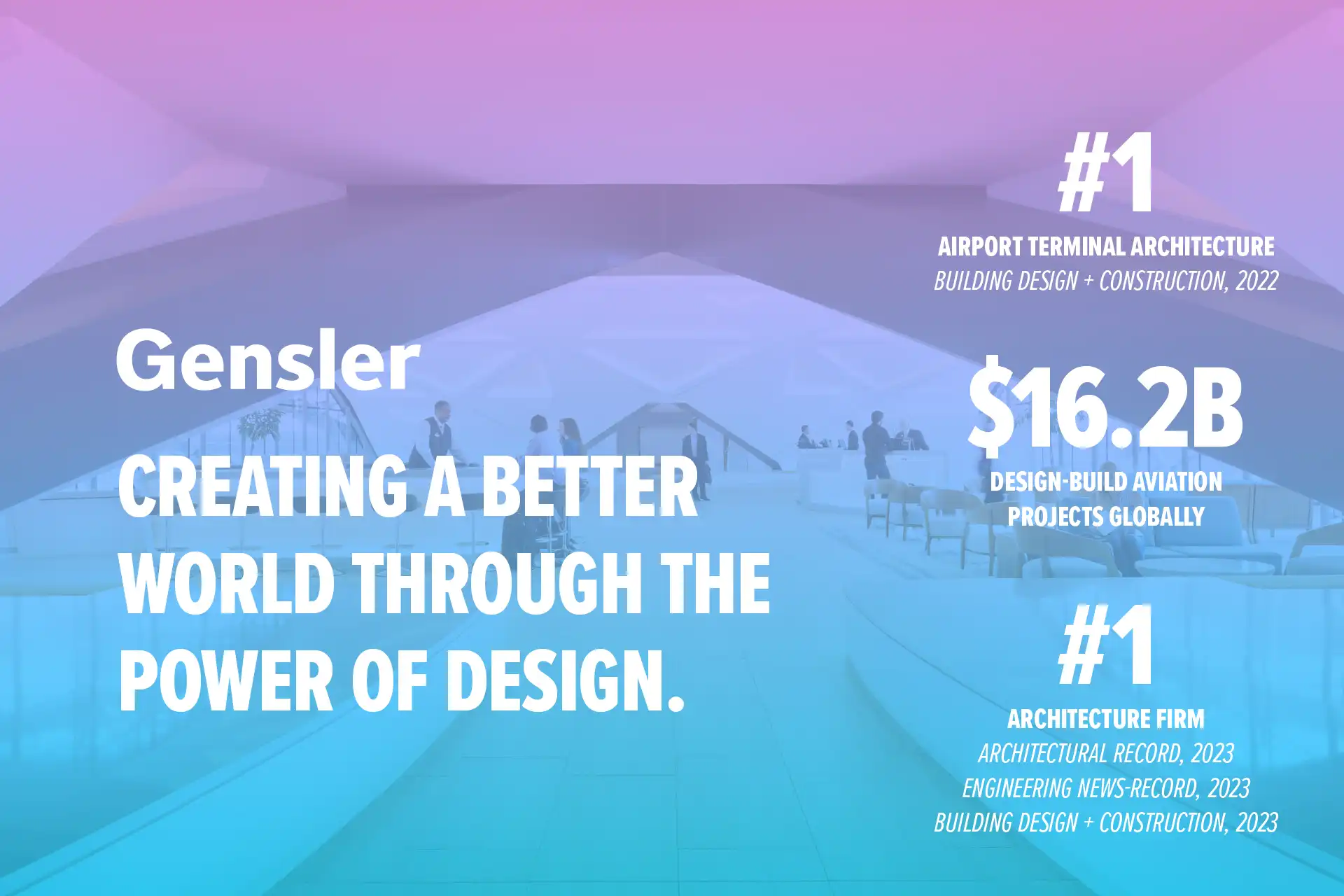 We're the leaders in aviation design, and not just because we're at the top of industry lists. We're the best at delivering efficient, cost-effective, and inspiring airport projects that improve the passenger travel experience, and we have the track record to prove it. We'll deliver the Concourse K that Miami International Airport needs and deserves, today and for the future.